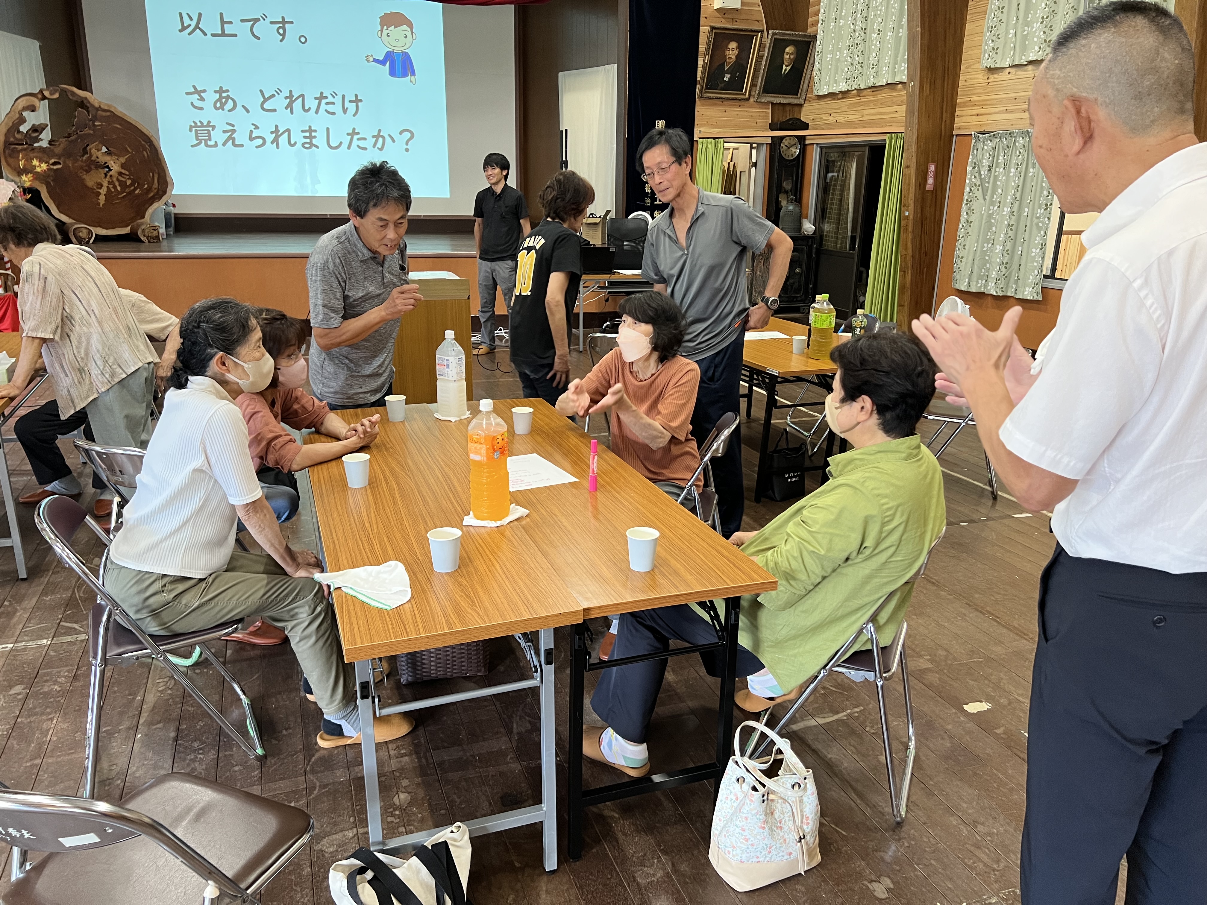 サロンでは、令和元年6月に「自然災害から命を救う!」の内容で、雲原のハザードマップを活用して、地区ごとの危険箇所や避難経路を福知山市危機管理室から来ていただき、学習しました。