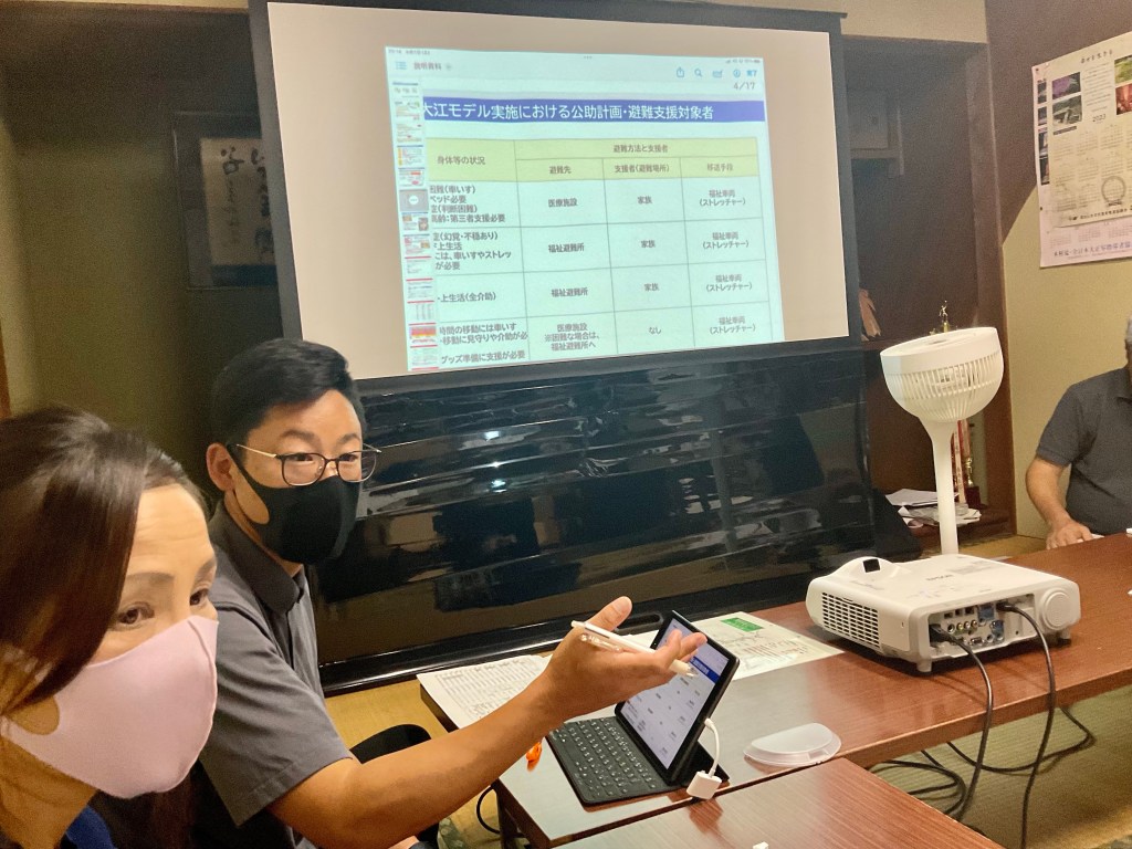 5年度、第3回目の会議を開催。前回に引き続き福知山市全体で取り組んでいる「要配慮者」の避難について協議。計画だけでなく、実際機能しなければ意味がありません。福知山市職員さんから地域に入り込んで一軒一軒訪問して避難の実際を一緒に考えたいと発言もありました。