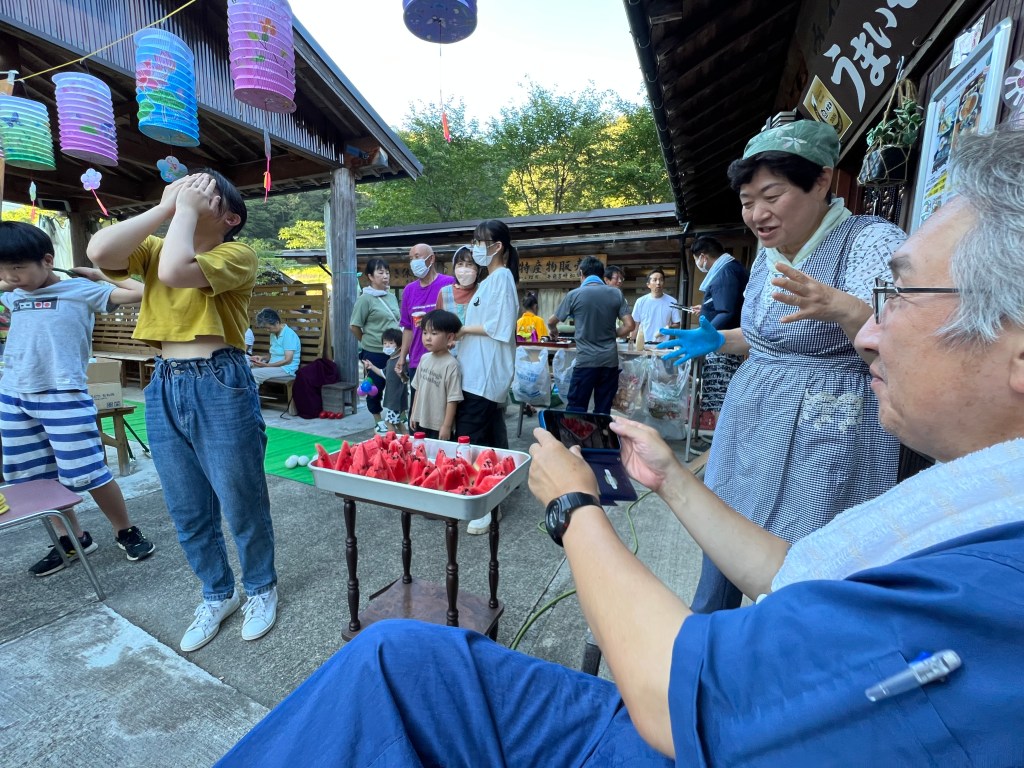 たくさんの子どもたちに参加いただき、にぎやかな水車広場となりました。サロンの夏の定番のそうめん、採れたてのスイカ、会長の焼く?たこ焼き、子どもとの真剣勝負、どっこいせの雲原の夏を楽しみました!