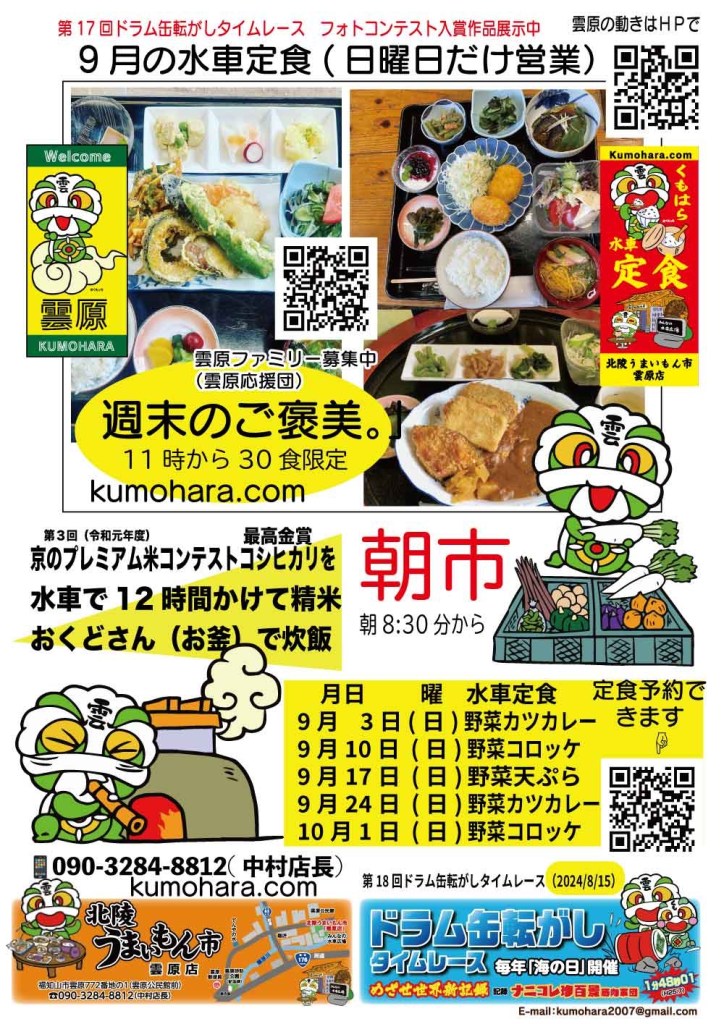 kumohara いがいと福知山 くもっち くもっち農園 くもっち雲原農園 こんにゃく さつまいも ふるさとレスキュー雲原 ふれあい広場 ドラム缶 ドラム缶転がしタイムレース 伝説 八幡神社 北陵うまいもん市「雲原店」 太鼓 桜御前 桜御膳 水車 水車定食 水車広場サロン 消防団 牛の皮 猫塚 神輿 祭 祭り 秋季点検 移住定住 笛 笛太鼓 西原亀三 酒呑童子 雲原 雲原こんにゃく 雲原ファミリー 雲原分団 雲原川 雲原村総合案内所 雲原砂防 雲原砂防イベント 雲原福祉推進協議会 雲原自治会 鬼伝説 鬼童丸 龍雲寺