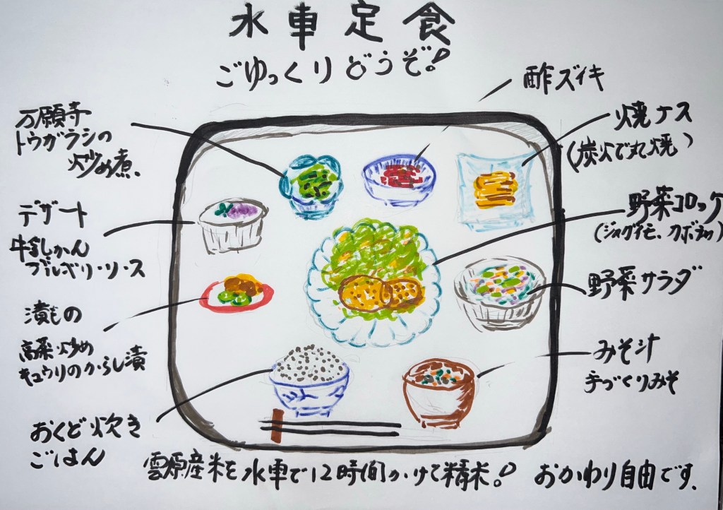 毎週違う水車定食 今日は「野菜のコロッケ」
