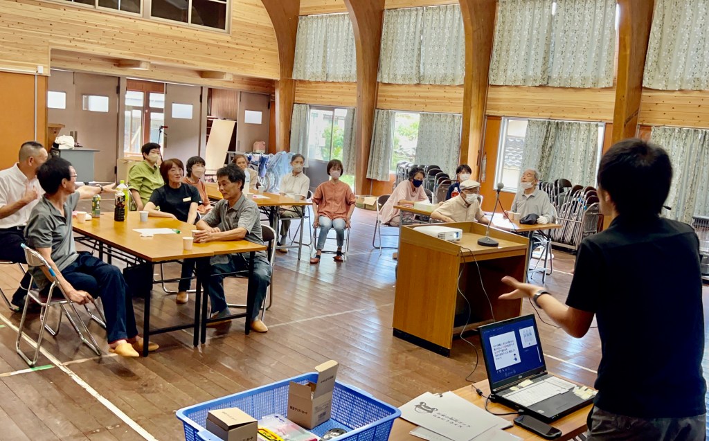 サロンでは、令和元年6月に「自然災害から命を救う!」の内容で、雲原のハザードマップを活用して、地区ごとの危険箇所や避難経路を福知山市危機管理室から来ていただき、学習しました。