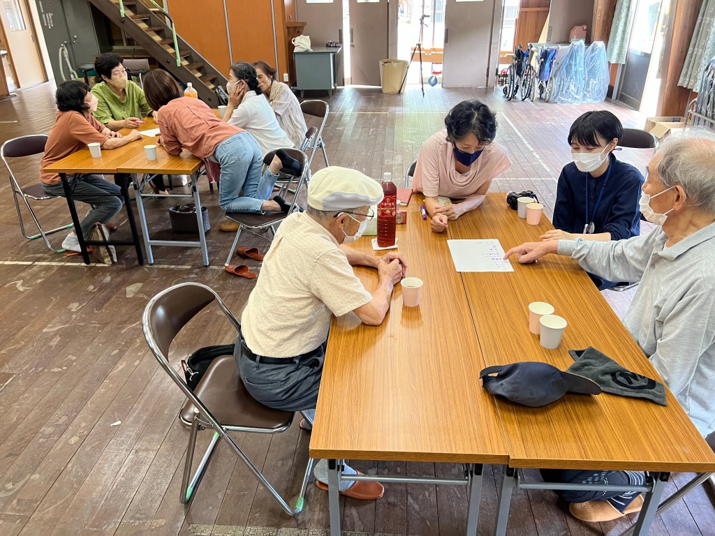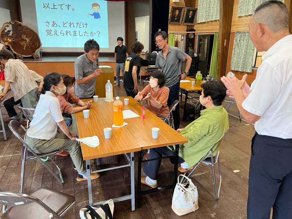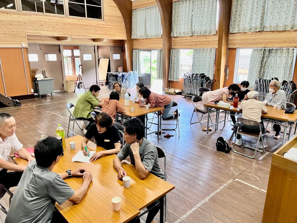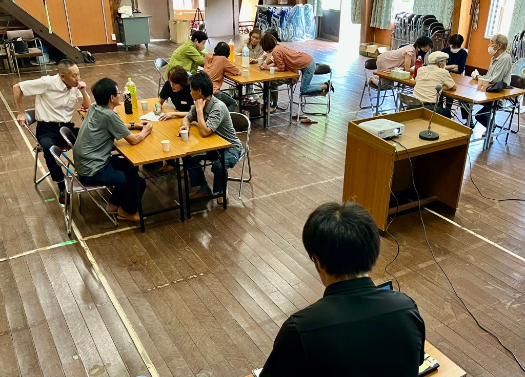 今回のサロンは、福知山市社会福祉協議会の職員さんを講師に「日ごろからの災害への備え」について、お話やゲームなどを交え、身近に学べる「もしもに備えるお役立ち講座」をお世話になりました。グループに分かれて、笑いあり、笑いあり、笑いありのなかで、避難時に必要な備えを学びました。楽しく、記憶にも残る、行動を起こしたくなる1時間半でした。