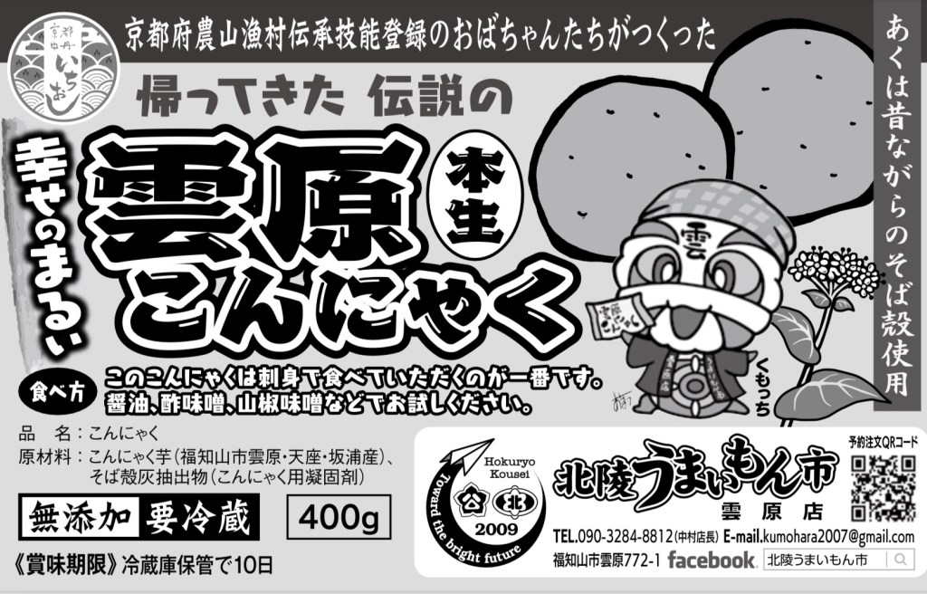 大変申し訳ございません。雲原こんにゃくの材料である「芋」が不作につき残り少なくなりました。