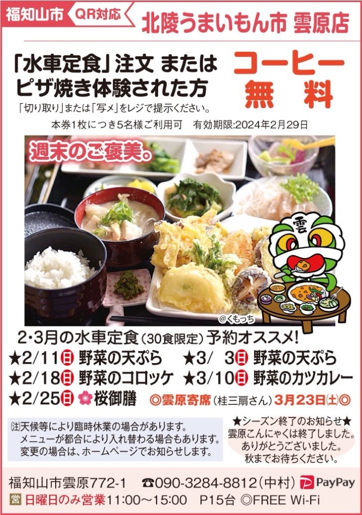 1週間が早い。桜御膳で賑わった余韻がまだ残る北陵うまいもん市「雲原店」。日曜日だけ開店。