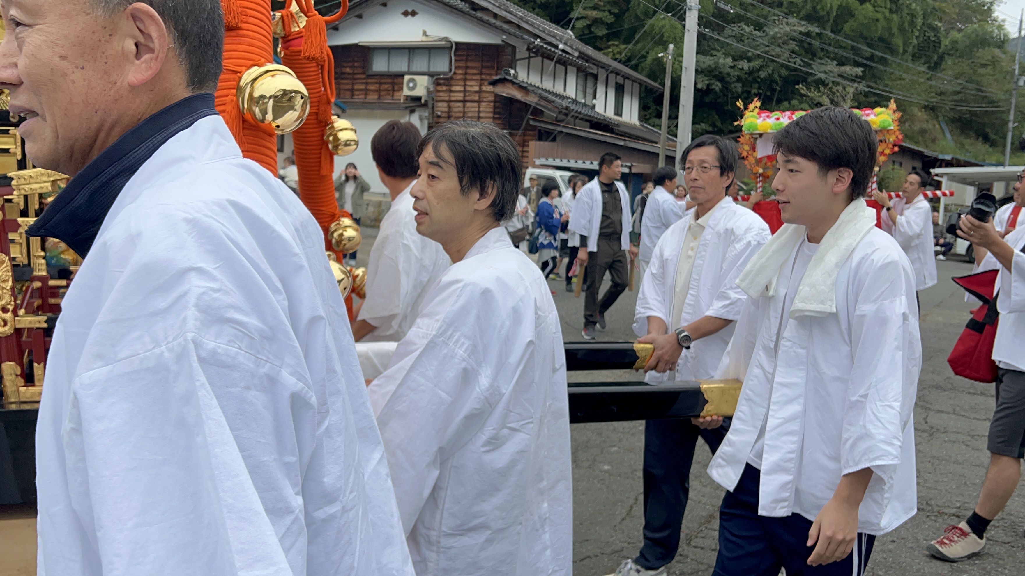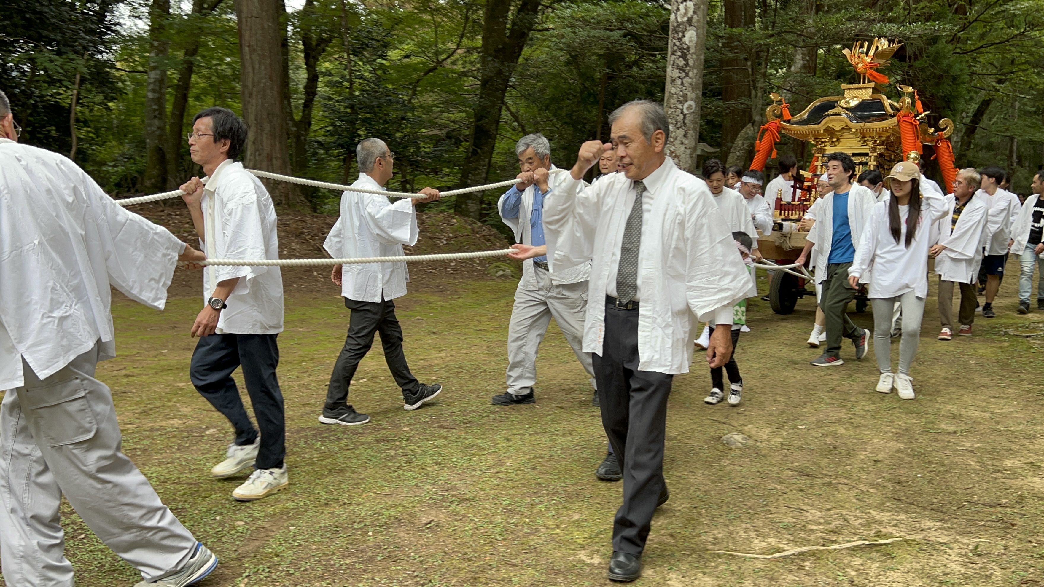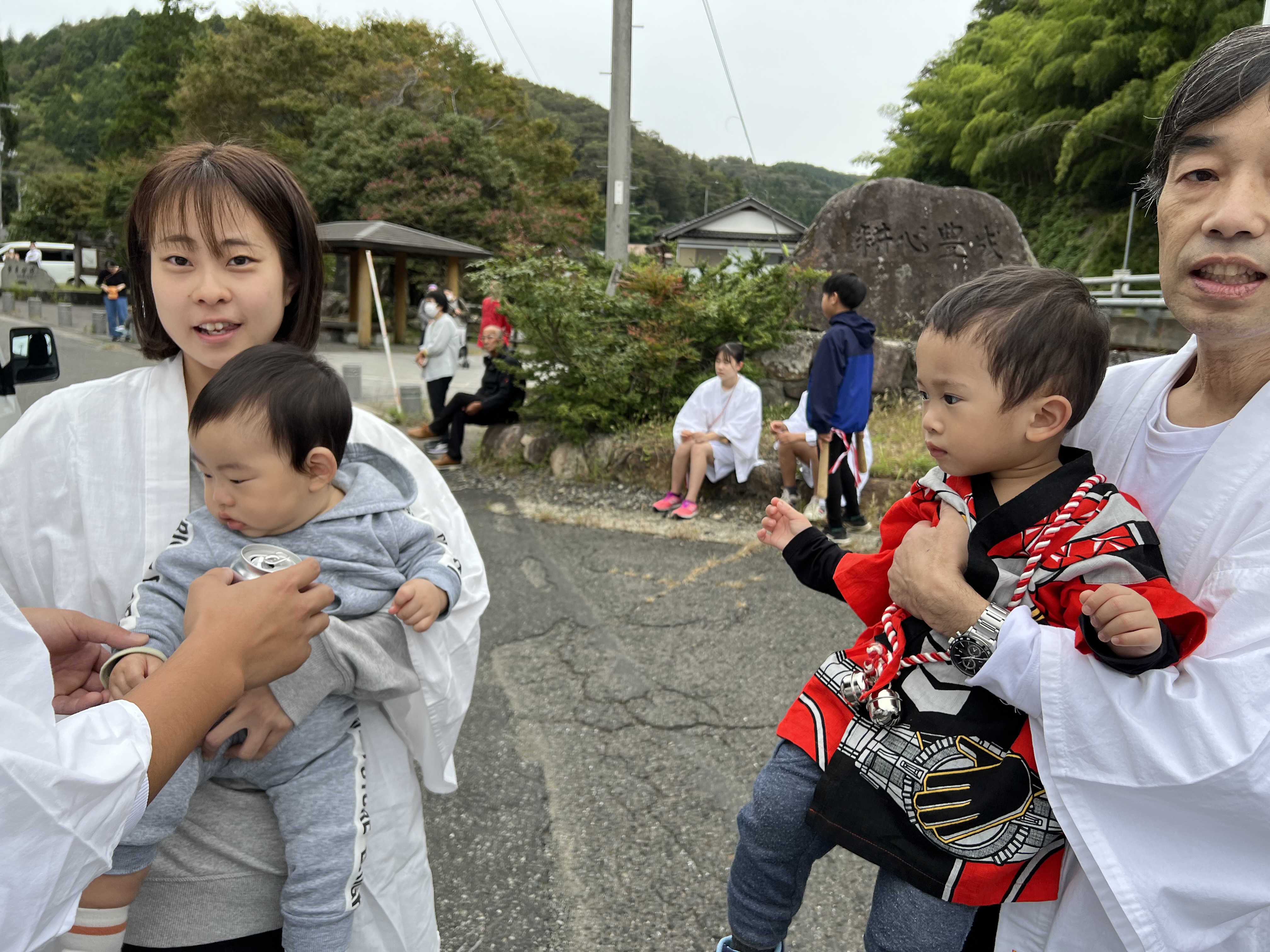 神輿の巡行時に公民館前、雲原郵便局前、先山口鳥居前、八幡神社で行います。