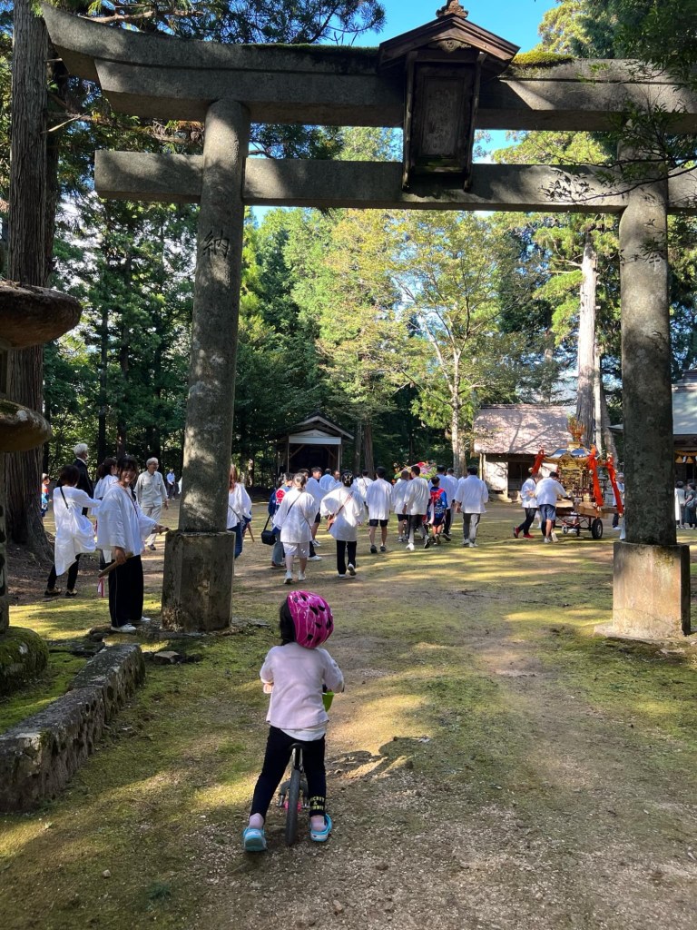 10月13日(日)清々しい秋晴れの下、雲原の八幡神社・十二社神社にて、伝統ある秋祭りが執り行われました。献身的な宮総代の尽力により参道も美しく整備され、参列者は例年より少なめながらも、滞りなくお神輿を神社へ奉納することができました。