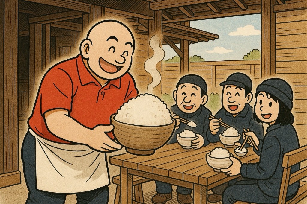 帰り道に立ち寄ってくださった大阪の大学生5人組が、「何杯でも食える」と、ご飯のおかわりラッシュ!