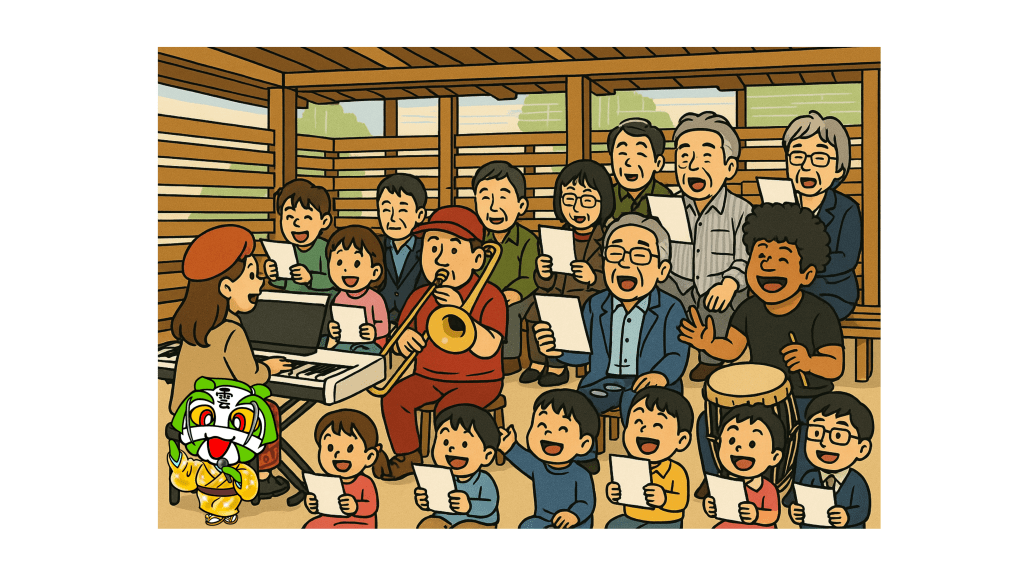 楽曲の中では、雲原にも伝わる酒呑童子伝説のその後編をもとにした「雲原の鬼ものがたり」が披露され、みんなで合唱しました。