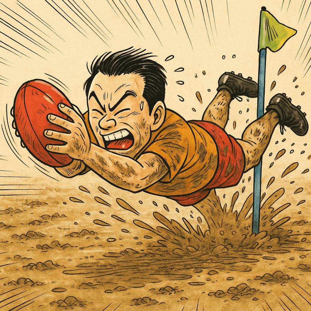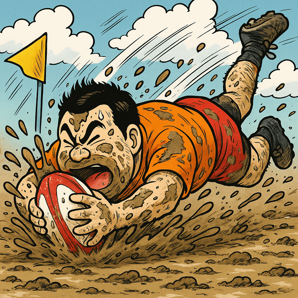 記録が乏しい中、想像とイラストと記憶で補いながら、くもっち田んぼラグビー部の挑戦は次なる展開へ。