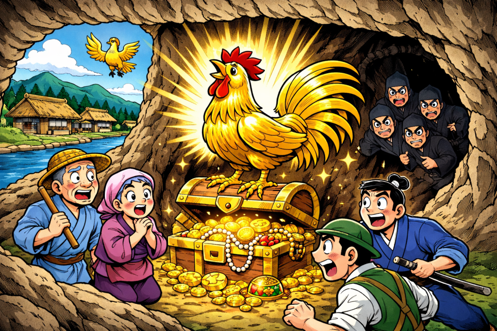 「この辺は金の鶏伝説がある場所やな」